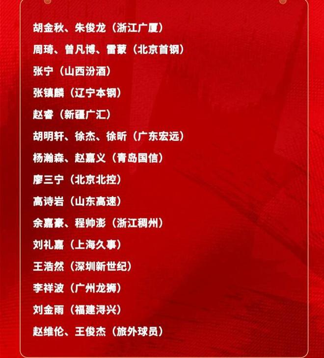 胡金秋和周琦是老将了,杨瀚森目前正在准备NBA选秀。新科CBA总冠军广厦队的朱俊龙,获得亚军的北京首钢曾凡博和雷蒙。辽宁队核心前锋张镇麟,曾经的广东三少,赵睿、胡明轩、徐杰。赵嘉义、刘礼嘉、王浩然、刘金雨是年轻新锐,此外还有旅美的赵维伦和王俊杰。我们看到这份大名单是老中青结合,郭士强培养年轻球员的意图明显。